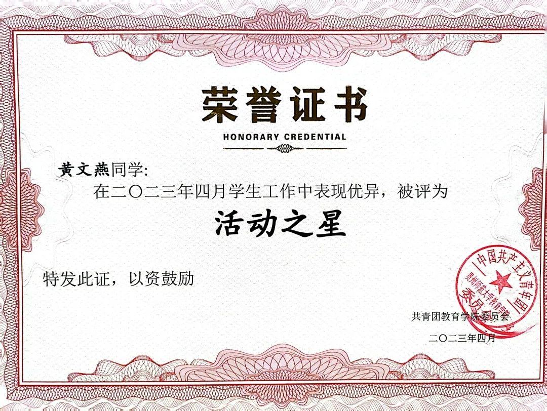 他们在校训“慎思笃行,博学致新”的引领下,坚持正确的政治方向,积极参加各种红色活动,补足精神之钙,筑牢思想之魂。获优秀共青团员荣誉称号共计15人。