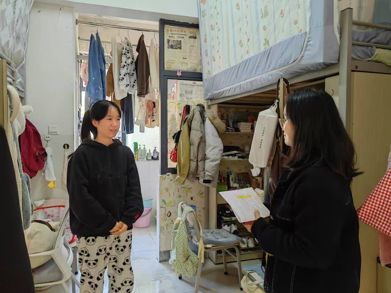 走访过程中,辅导员和同学们亲切交谈,叮嘱大家新学期要尽快调整学习状态,并严格遵守宿舍管理规定,提高消防安全意识。同时,辅导员提醒大家注意网络安全,谨防各种形式诈骗。