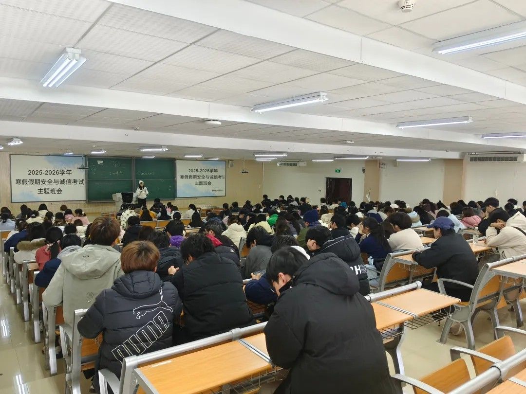 各年级辅导员组织各班围绕宪法宣传、诚信教育与寒假安全教育开展系列主题班会。会上,辅导员引导同学们将宪法意识内化为行为准则,树立诚信的价值导向,并提醒大家注意人身安全,祝愿同学们度过一个充实、愉快的假期。