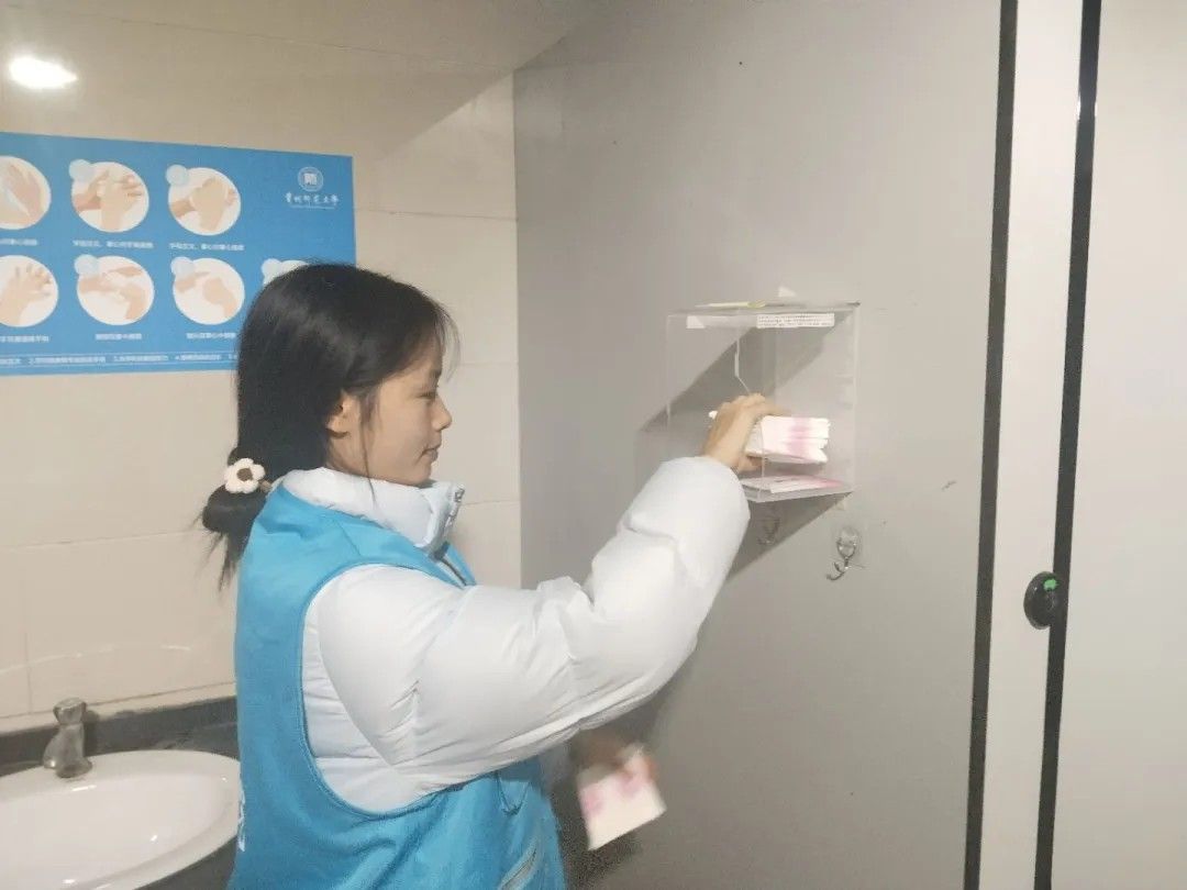 我为同学做实事|集方寸之棉,散点滴之光,公司“予她温情,微爱护航”关爱女生志愿服务活动顺利结束。工作人员在一楼至五楼设立活动点,摆放卫生巾互助盒,并张贴使用指南与相关告知,以细致行动守护每一位女生,将关爱之心延续传递。