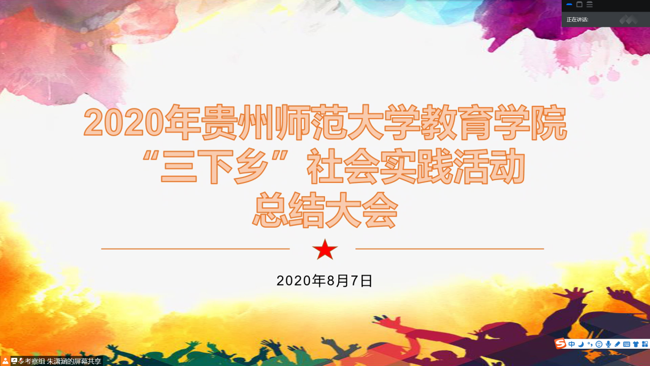 会上,朱潇涵对本次活动的服务内容和开展情况进行了整体介绍,活动于8月3日至8月7日结合实际情况在贵州省各地区开展。随后,各小组代表就本次活动的主题和成果进行了详细的汇报。